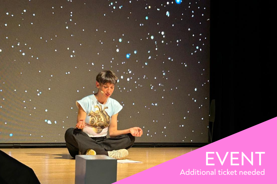 This performance is in EnglishMisunderstandings by Rocío Berenguer is not your average performance: it’s a live encounter between Rocío and an AI named Bobby. Together, they explore ancient ways of predicting the future, mysterious stones, and the strange art of speaking “extraterrestrial.”