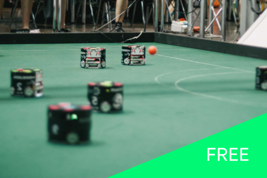At Highlight Festival, the bots take to the field on a 2×3 meter pitch, where you can jump in and control the game yourself!
