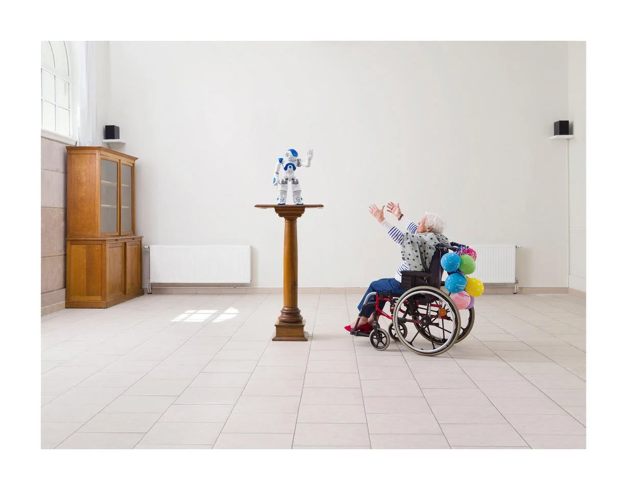 Underground, a 1.2-ton robotic arm roars to life. The Mad King, part of Bram Ellens’ series Robots in Captivity, blurs the line between machine and creature. This industrial robot moves like a trapped animal, chained to the floor, its strength both fascinating and unsettling.